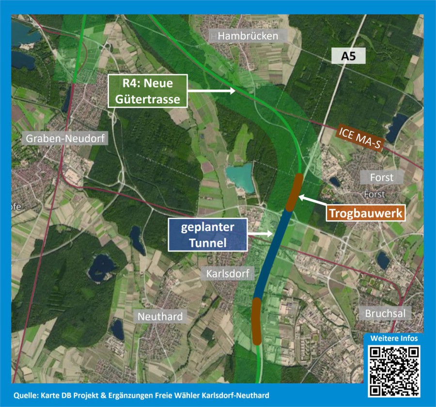 Um was geht es? Der zunehmende Güterverkehr benötigt neue Gleise, insb. das zweigleisige Nadelöhr zwischen KA und MA stellt hier eine große Herausforderung dar.